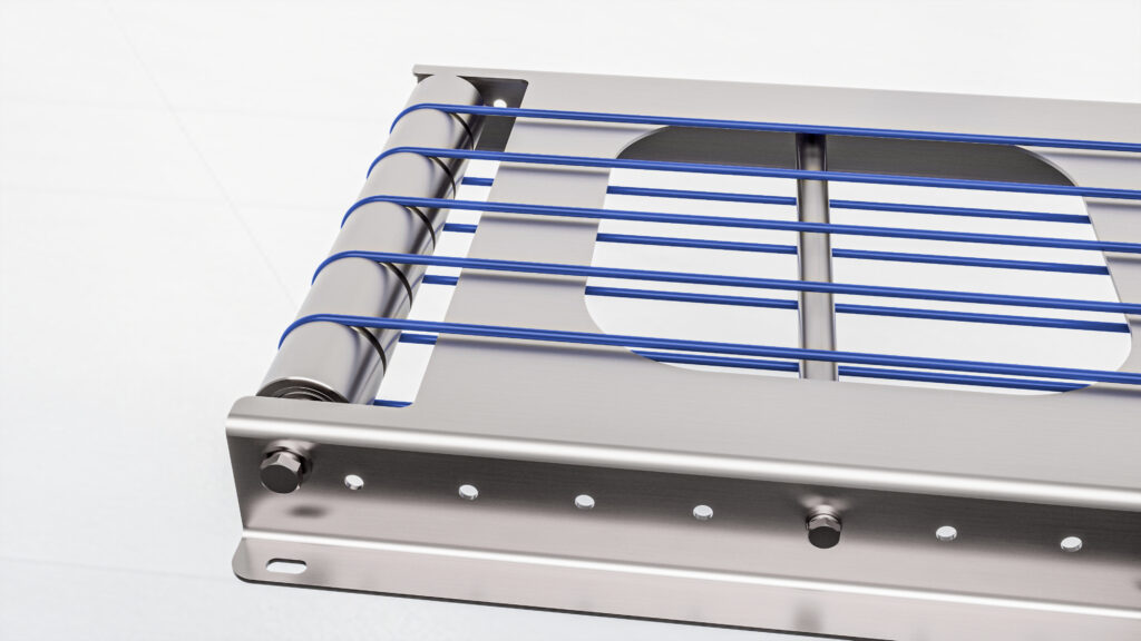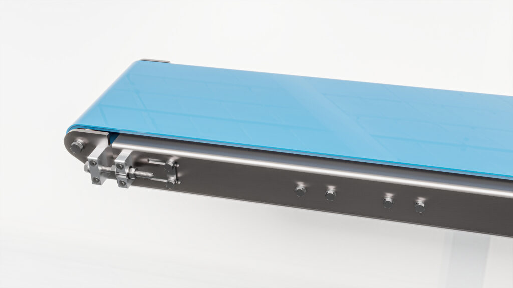 Si tu aplicación requiere ajustes específicos o soluciones a medida, podemos modificar el diseño sin problema: incluir taladros o anclajes específicos para la fijación de otros equipos, soportes para sensores o aplicadores de etiquetas, guiados especiales, bandas con medidas no estándar, o cualquier otro detalle que requiera tu instalación.